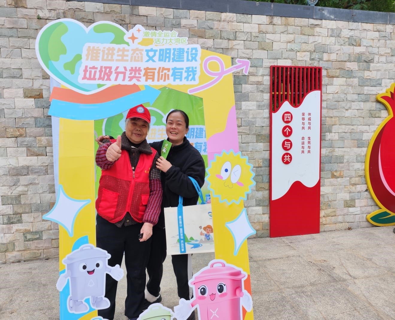 活动现场设置了模拟投放体验、知识互动问答、分类承诺打卡三大趣味环节,参与者集齐3张任务卡片即可兑换定制宣传品。在模拟投放区,大家在志愿者指导下精准区分各类垃圾,连续3次投放准确即可通关;知识问答环节将全运常识与垃圾分类标准相结合,既普及了体育精神,又强化了分类知识记忆;“分类承诺墙”前,市民纷纷签名打卡,用实际行动表态“践行分类责任,共建绿色龙穴”。此外,志愿者与督导员组成的服务队伍还深入辖区商铺、饭店,开展现场指导,纠正不规范投放行为,助力厨余垃圾源头分类提质增效。