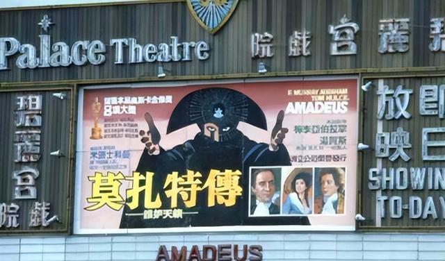 1980年代的香港影剧院,影剧院外贴到的电影宣传海报是1984年美国牌照的大面积《莫扎特传》。
